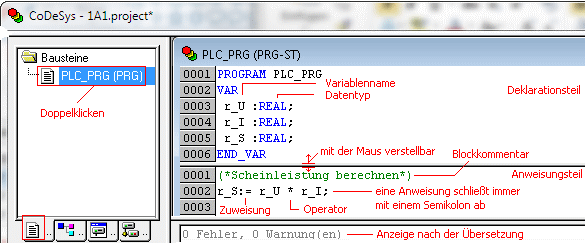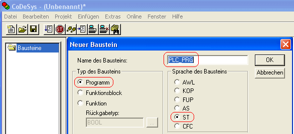 Wählen Sie den Baustein PLC_PRG,
