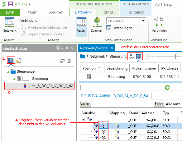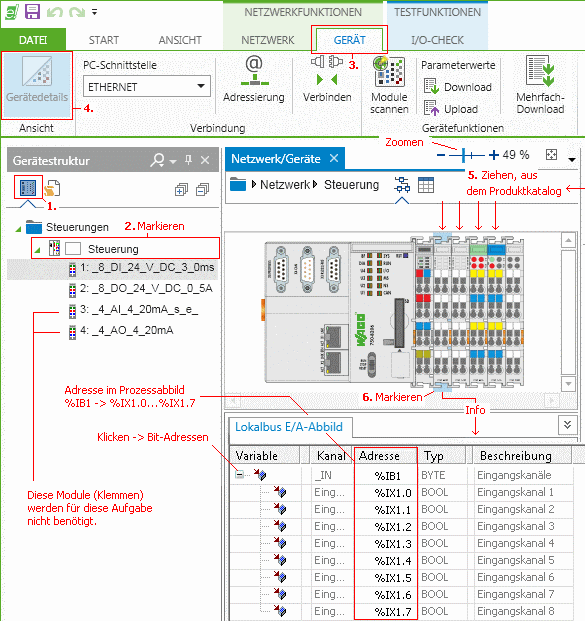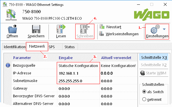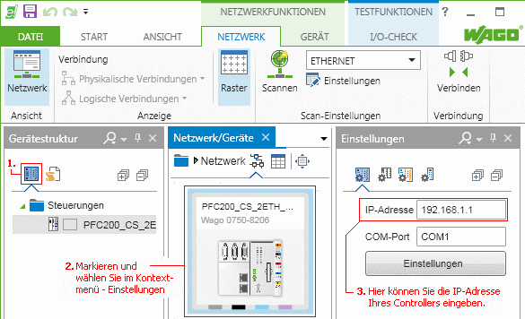 konfigurieren, Programm in den Controller laden IP-Adresse