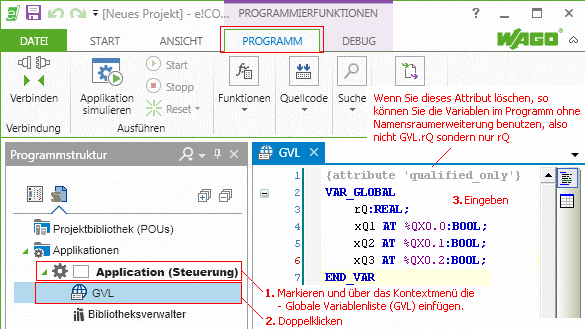 Markieren Sie in der Programmansicht- Programmstruktur