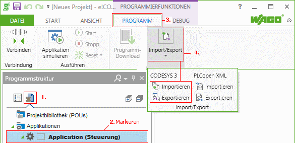 Programmstruktur den Punkt Application und fügen