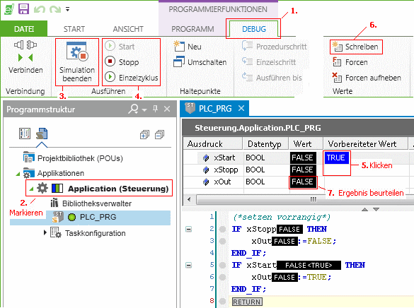 in die Simulation oder in die Steuerung.