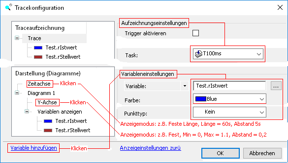 Variablen beobachten. Über die Trace-Funktionsübersicht