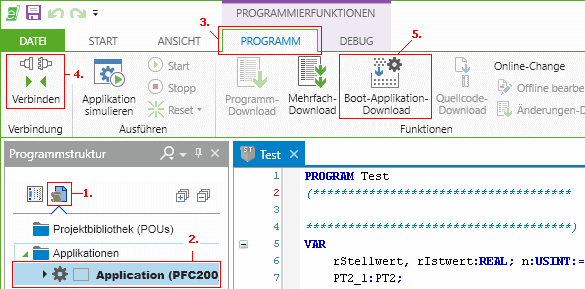 in der Programmstruktur den Punkt "Application"